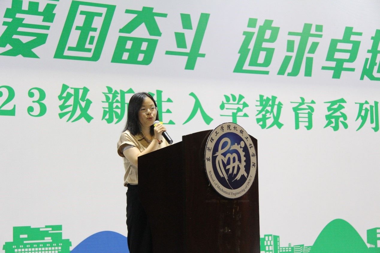 机械设计制造及其自动化2班班主任雷碧婷代表全体教师向每位新生表达了衷心的嘱咐,希望在莞工中的学习与生活,能做到自立自强的毅力和意志,学会独立克服困难的同时,懂得主动寻求建议和帮助,独立克服困难,她代表全体教师祝贺新生们能在莞工中创造属于自己的成功。