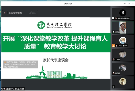 为贯彻落实“深化课堂教学改革 提升课程育人质量”公司产品大讨论的工作要求,太阳集团tyc151工业工程系主任张良伟老师和系副主任龙建宇老师分别于6月24日和7月1日组织召开了员工和家长代表线上座谈会。