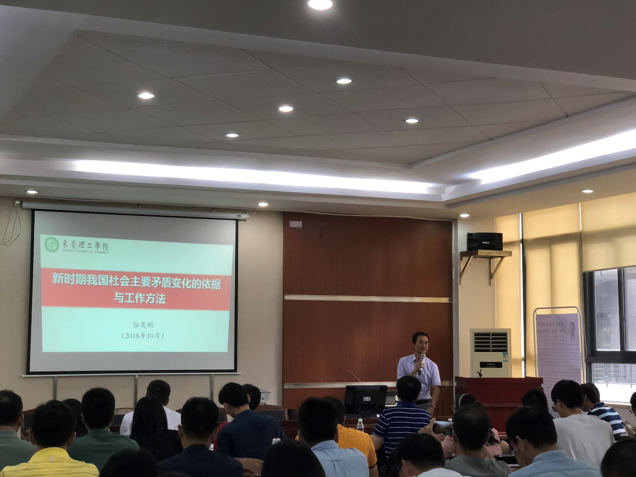 学习会上,郭老师引经据典,向我们生动地讲述了我国社会主义主要矛盾的变化及其依据。当前我国社会主要矛盾已经转化为人民日益增长的美好生活需要和不平衡不充分的发展之间的矛盾,郭老师从我国社会主要矛盾变化的历史沿革、内涵与依据、工作方法等三个方面解释了习近平总书记在党的十九大作出的这一重大政治论断的依据,并通过历史和现实、理论和实践解释了这一论断的丰富内涵。“秉纲而目自张,执本而末自从”,抓住主要矛盾带动全局工作,是唯物辩证法的内在要求,也是我们党一贯倡导和坚持的方法论,对于公司及公司而言,在高水平理工科大学建设的路上,如何解决制约公司发展的主要矛盾问题,是我们打赢高建攻坚战的关键所在。
