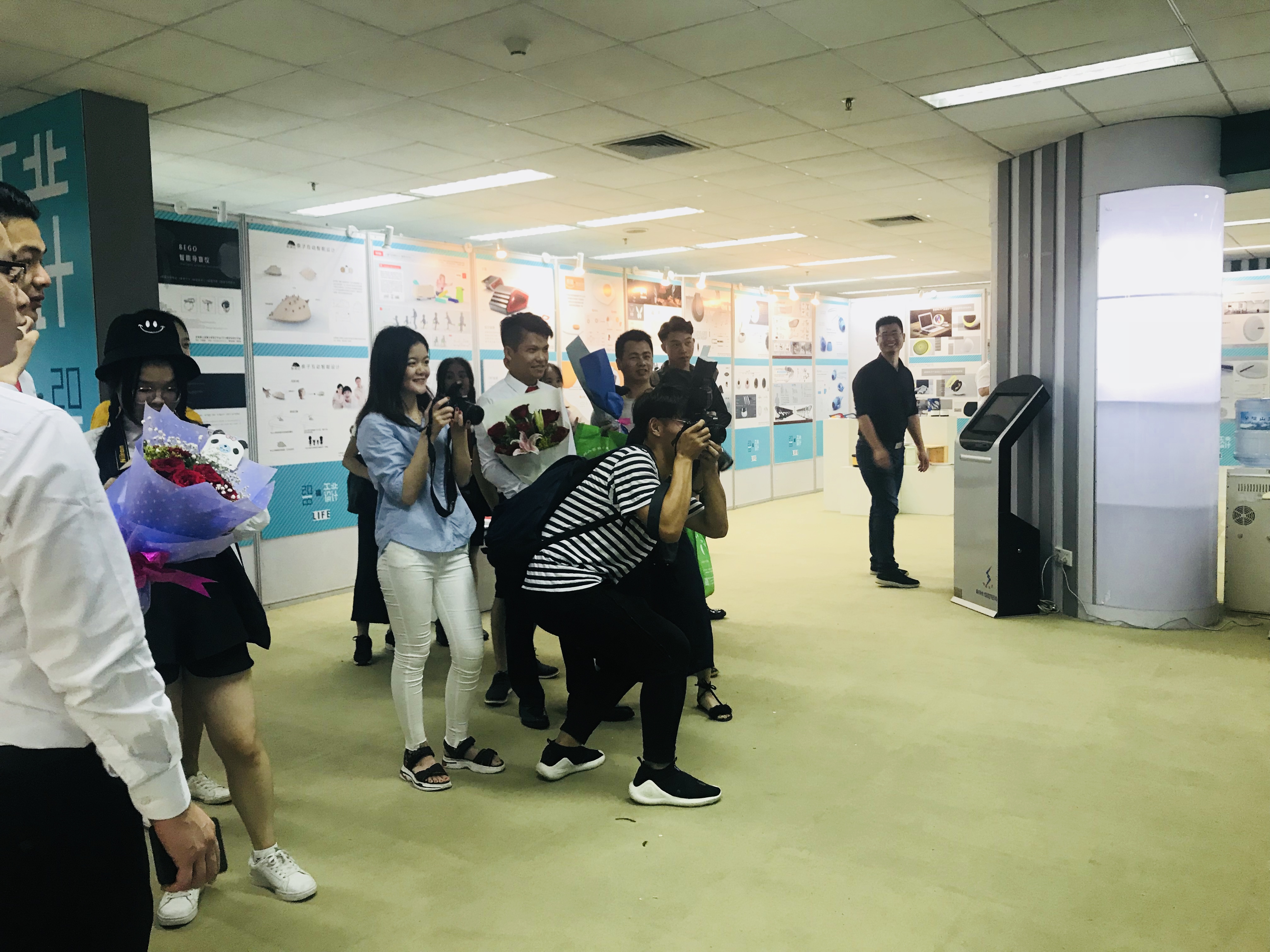 展览现场,毕业生与亲友纷纷与自己的作品合影,在即将毕业的季节里,留下了美好的映像。本次展览共展出毕业设计作品98份,包括家具设计、3c设计、玩具设计等多类别,展览将维持一周的展出,稍后将继续开展设计月系列活动,其中拟定在展览场地继续举行工业设计专业课程成果展。