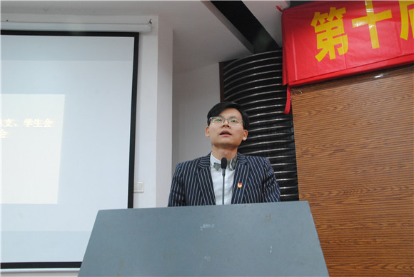 干事发言之后,员工会主席唐海鹏上台发言。他充分肯定了团学这半年来的工作,并对未来的团学工作确立了目标,希望团学能在新的一年里取得更大的进步。