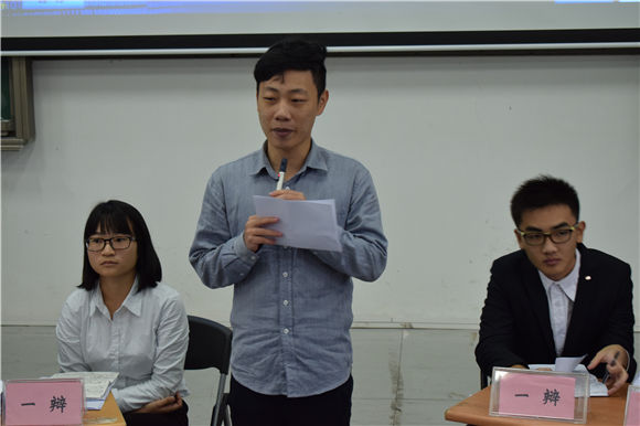 11月24日,2016级新生辩论赛决赛在教学楼6E306教室举行,出席此次决赛的嘉宾为太阳集团tyc151团总支书记、辅导员肖毅,担任此次决赛的评委有:法律与社会工作公司辩论队、2015年省赛冠军队最佳辩手郭家铄,文学与传媒公司辩论队队长廖丹丹,生态环境与建筑工程公司辩论队队长刘智彬,太阳集团tyc151辩论队刘碧新、柯春任、李皓贤、曾均怡。