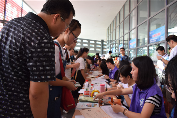 在一天的迎新工作中,尽管天气不似预期,下起雨来,但这并没有浇灭志愿者们帮助新生的热情。志愿者们以十二分的热情,认真地为新生们解答问题。他们的亲切和热情感染了在场很多新生及其家长。在新生报到处,经理孙振忠、党总支书记钟守炎、党总支副书记陈举铭、团总支书记、辅导员肖毅、辅导员李钰田、黄楚刁都来到现场,关注新生注册情况。期间,陈书记为贫困员工发放爱心物资;同时为了更好地做好迎新工作,与16级助班开了一个会议,商讨新生入住宿舍可能会遇到的问题及解决方案。