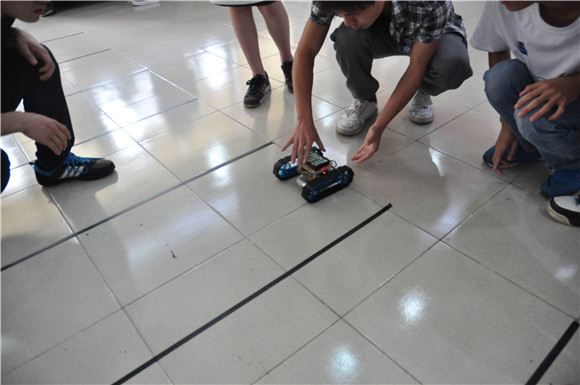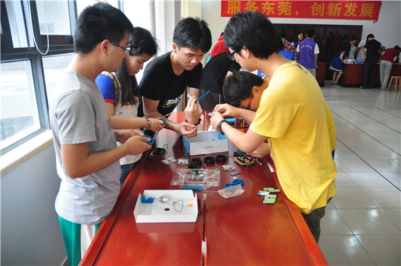 在这次激烈的比赛中,参赛队伍都乐于其中,努力发挥自己的想象力去设计并拼装自己队伍的机器人,每当看到机器人顺利行走时都激动不已。