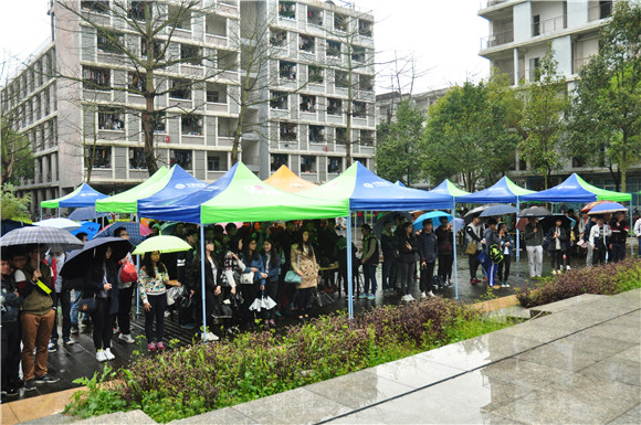 创客嘉年华现场设机器人竞赛表演区,校专项机器人团队作品展示区,校内创新创业平台创客作品展示区,无人机展示区,赞助商产品展示区。活动的当天雨水不断,但这浇不灭观众们的好奇心,仍有许多观众撑伞前来观看,其中创客展示区和无人机展区吸引了大量员工驻足观看,与机器人曦仔对话。各展区负责人为观众解答疑问,让观众们更加了解机器人和创客。