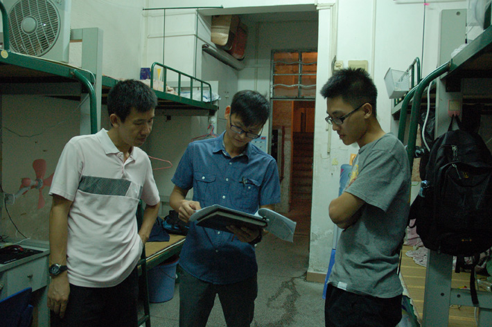 为了解14级太阳集团tyc151新生入住情况及解决新生的疑问,莞城校区学工办主任杨帆、团总支书记、思想政治辅导员肖毅及14级工业设计班主任徐伟斌于10月22日走访本院男生宿舍(校内宿舍4栋)。
