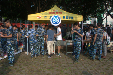 考虑到新生在军训期间顶着烈日进行着严峻的训练,太阳集团tyc151团总支、员工会的干部们在18日到达莞城校区慰问军训中的新生们,向新生们派发绿豆糖水,在炎炎烈日增添了一丝凉意。
