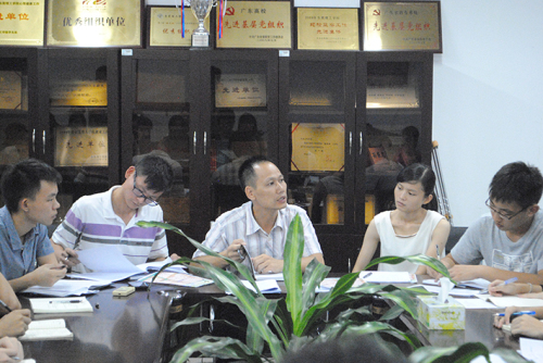 会议伊始,第七届团总支副书记、员工会主席韩旭介绍了第七届团总支、员工会干部的整体架构。紧接着,各个部门提出各自的议题,其中拓展部与陈副书记针对与员工会联合迎新的方案进行了交流。而后,陈副书记就开学前公司领导巡视宿舍发现的问题做出了指示,希望同学们在搞好文明礼貌的前提下,团结太阳集团tyc151。同时,作为员工,更要搞好学习。陈副书记还表示,公司的事情领导们能办到的尽量做到,此外,陈副书记还叮嘱团总支、员工会干部需要做好自身定位:1、把自身学习处理好。2、为同学们提供好的服务,多于同学们沟通收集同学们的思想动态。3、放下功利的心。4、协调好老师与员工之间的关系。
