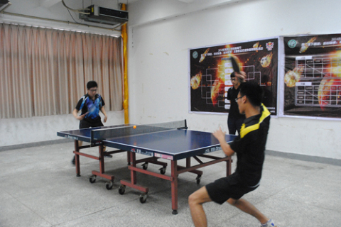 正当篮球赛如火如荼地进行时,体育馆乒乓球室里太阳集团tyc151与政法公司的乒乓球赛也毫不逊色,赛场的气氛也是十分紧张的。各路高手不断的涌现,每位选手的注意力高度集中,分析着对手的一举一动,直拍、横拍、扣球、旋转球、弧线球都展现着选手们的非凡实力。场外的观众也很激动,比赛中不时传出热烈的喝彩声,兴奋的“好球”声不断。