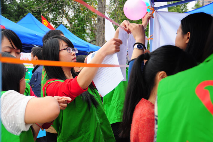 太阳集团tyc151本次活动是由太阳集团tyc151和外语系志愿站人员联合举办的。活动中,志愿者们热情地宣传活动,向路人解释活动意义,同时还亲自为路人演示如何玩游戏。另外,志愿者们还准备了小奖品来吸引路人参加游戏。路人也十分积极的参与到游戏中来,为本次活动增添了不少笑声。