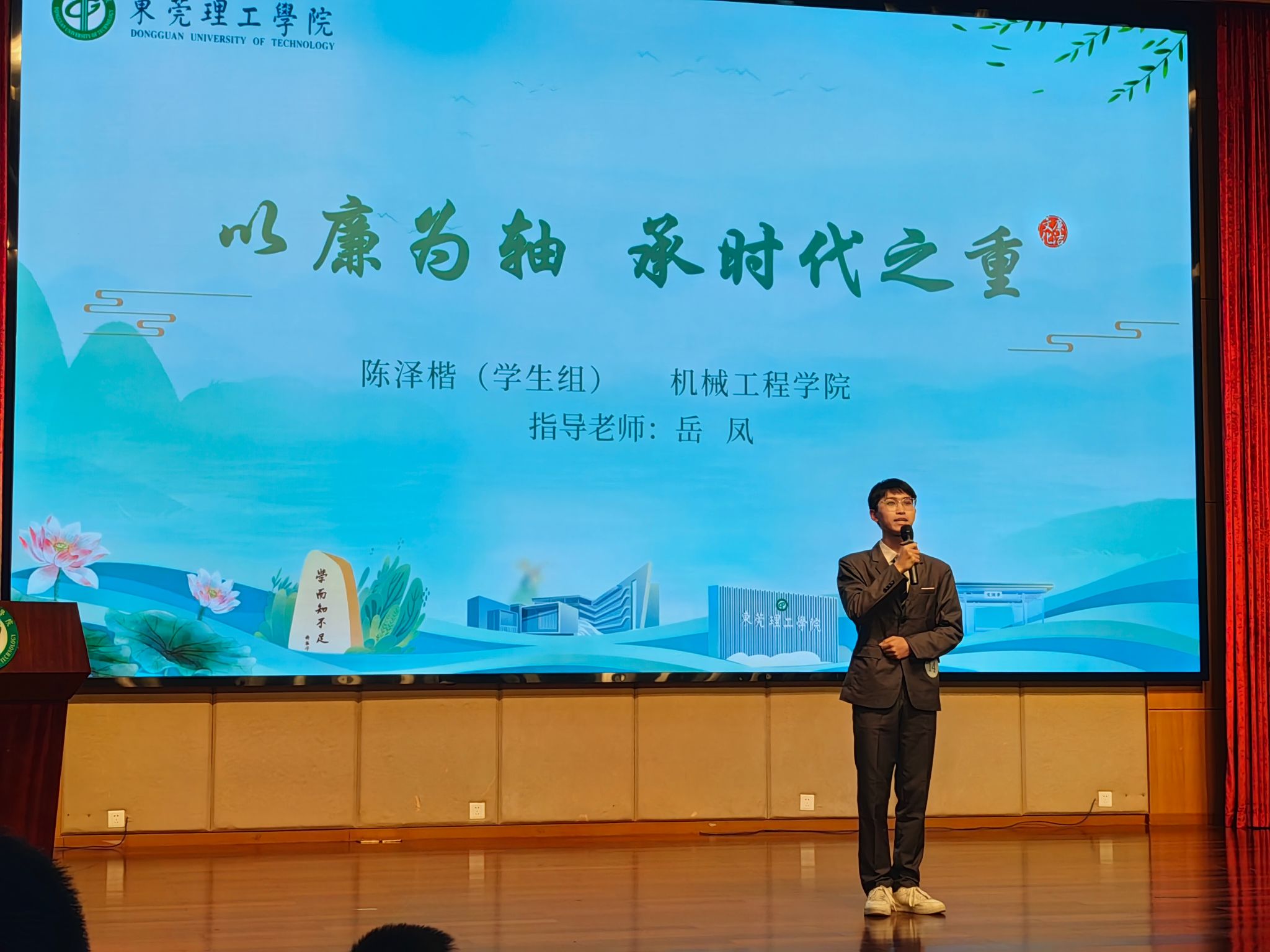 在师生廉洁文化主题演讲活动中,公司师生凭借深刻的思考与生动的表达脱颖而出。教师组中,付皓珺老师作为辅导员代表,以推优入党这一师生密切关注的校园“小事”为切入点,提出“辅导员需持身守正,以言传身教守护校园清廉生态”的观点,用贴近师生生活的案例传递廉洁育人理念,最终获授 “优秀廉洁宣传员”称号;员工组中,陈泽楷同学结合行业惨痛教训,将 “廉洁” 比作“青年担当的关键轴承”,强调廉洁对个人职业发展与社会责任感的重要意义,其演讲逻辑清晰、感染力强,赢得现场评委与观众的一致认可,收获了演讲比赛员工组三等奖。