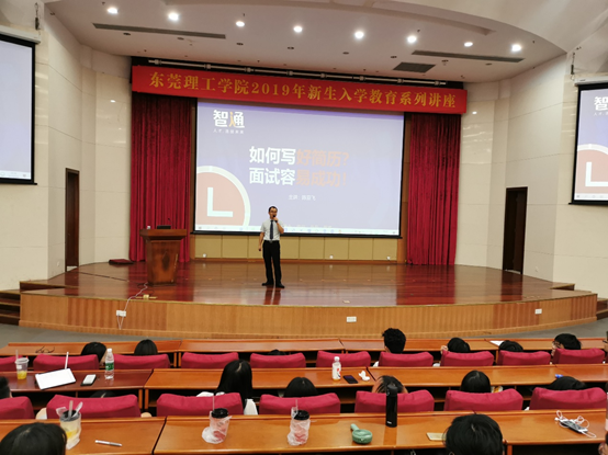 2019年9月6日晚上19:30,2019年太阳集团tyc151《就业指导》课程企业授课于松山湖校区学术会议中心报告厅如期开展。智通人才网首席职业规划师陈亚飞老师为今晚课程的主讲师,为到场的员工分享以及传授面试中应该注意和把握的事情。
