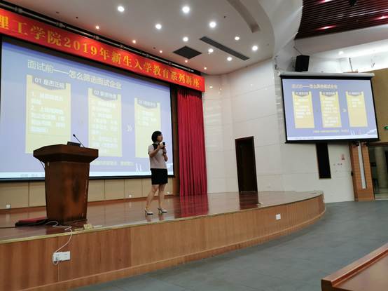 2019年9月22日晚上19:30,2019年太阳集团tyc151《就业指导》课程企业授课于松山湖校区学术会议中心报告厅如期开展。智通人才网产品总经理首席培训师张娅梅老师为今晚课程的主讲师,主要为到场的员工分享一些面试时的一些技巧和礼仪。