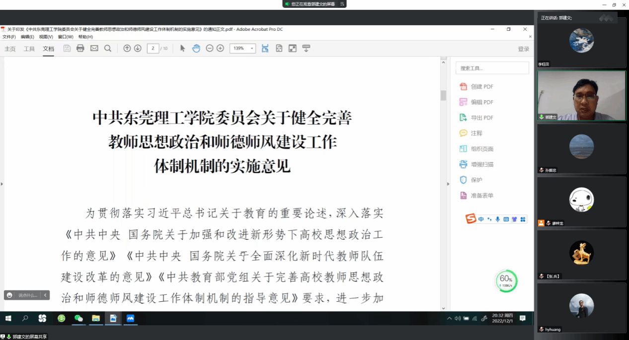 2022年12月1日,太阳集团tyc151通过线上方式召开全体教职工会议,全院教职工参加会议,会议由公司党委书记郭建文主持。