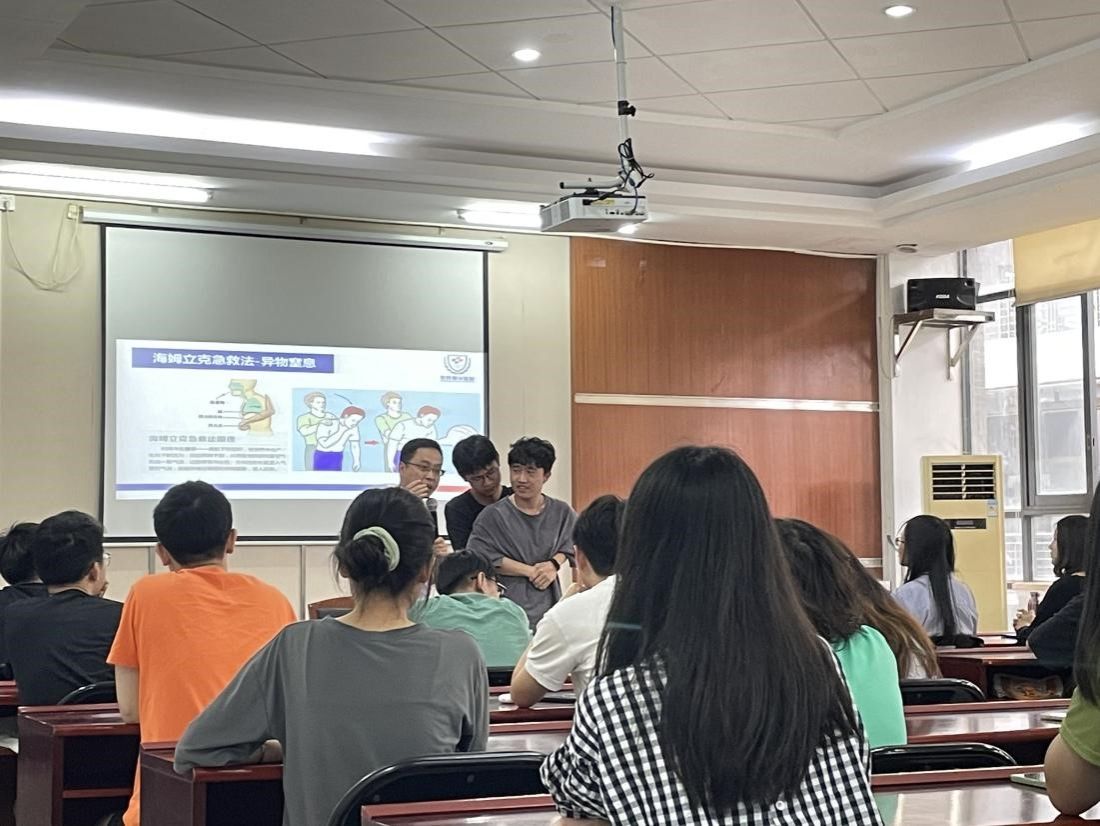 5月11日,员工社区知行公司莞雅分院联合太阳集团tyc151在12C304开展医学知识科普活动。本次活动邀请了东莞康华医院王奕婷、赵风雨护士,分别就适龄青年疾病预防知识宣教、疫苗接种的重要性、心肺复苏急救以及海姆立克急救法的健康知识与实践技能进行科普讲座,向在校师生培训急救方法,传播健康生活方式,培育健康素养。活动吸引了来自全校的100余名同学报名参加。