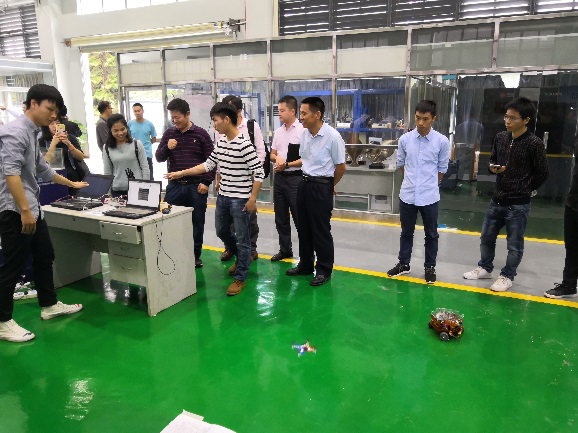 孙经理在介绍过程中与参加活动老师讨论基础教育方面的一些问题。他作为一名员工家长,对中小学开展创客教育非常支持。他谈到,现在很多高校的老员工有这样一个问题,本来一些应该在小学、初中就掌握的动手技能,要进入到大学才能得到培养,这个明显比德国、美国等先进发达国家滞后。园区教育局现在要加强中小学发展创客教育,他表示愿意随时提供技术和设备方面的支持。