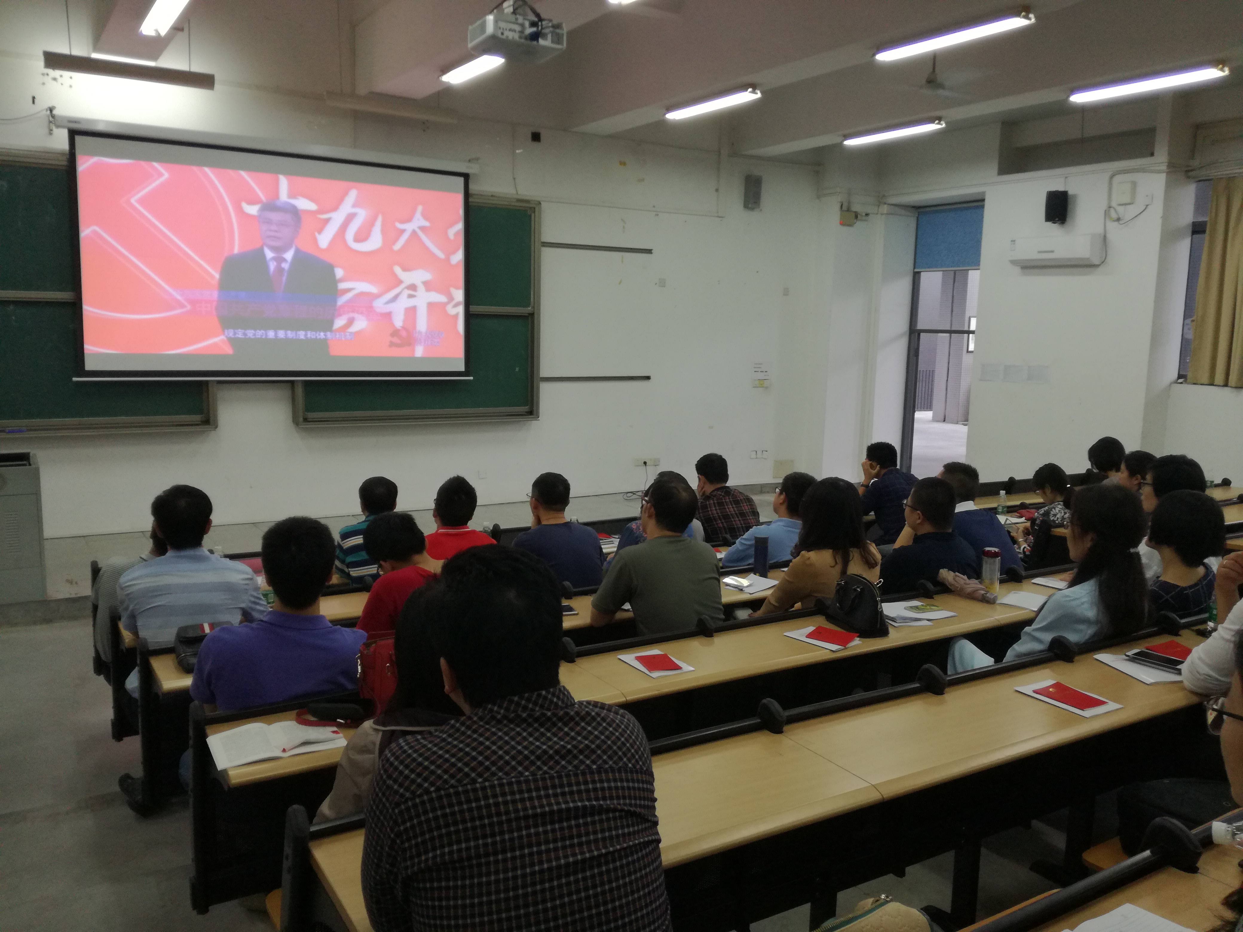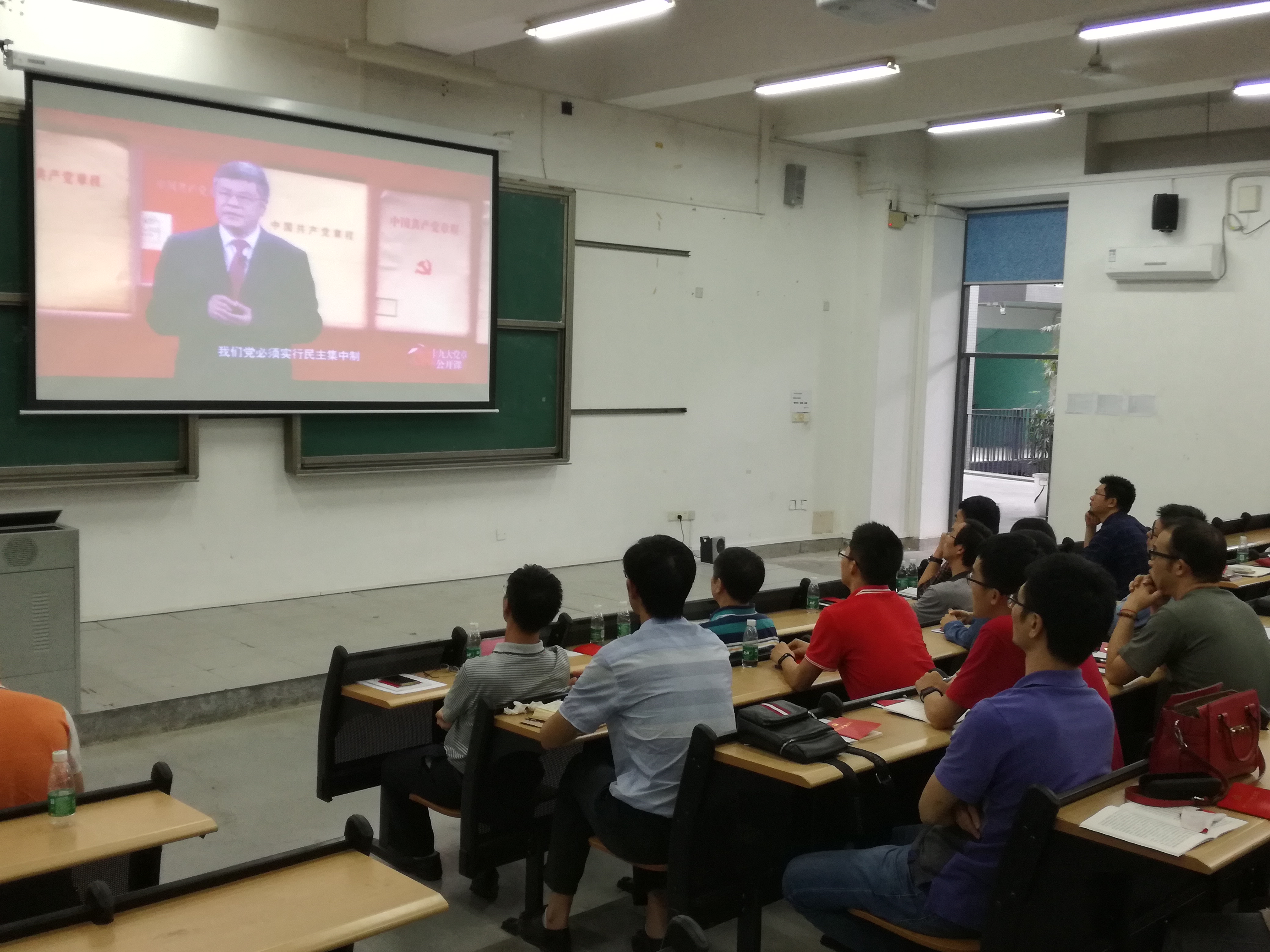为学习贯彻党的十九大会议精神,2017年11月16日下午,太阳集团tyc151全体教职工党员在6E206集中观看了《十九大党章公开课》第一讲《中国共产党章程的历史沿革》,对《中国共产党章程(修正案)》开展专题学习。