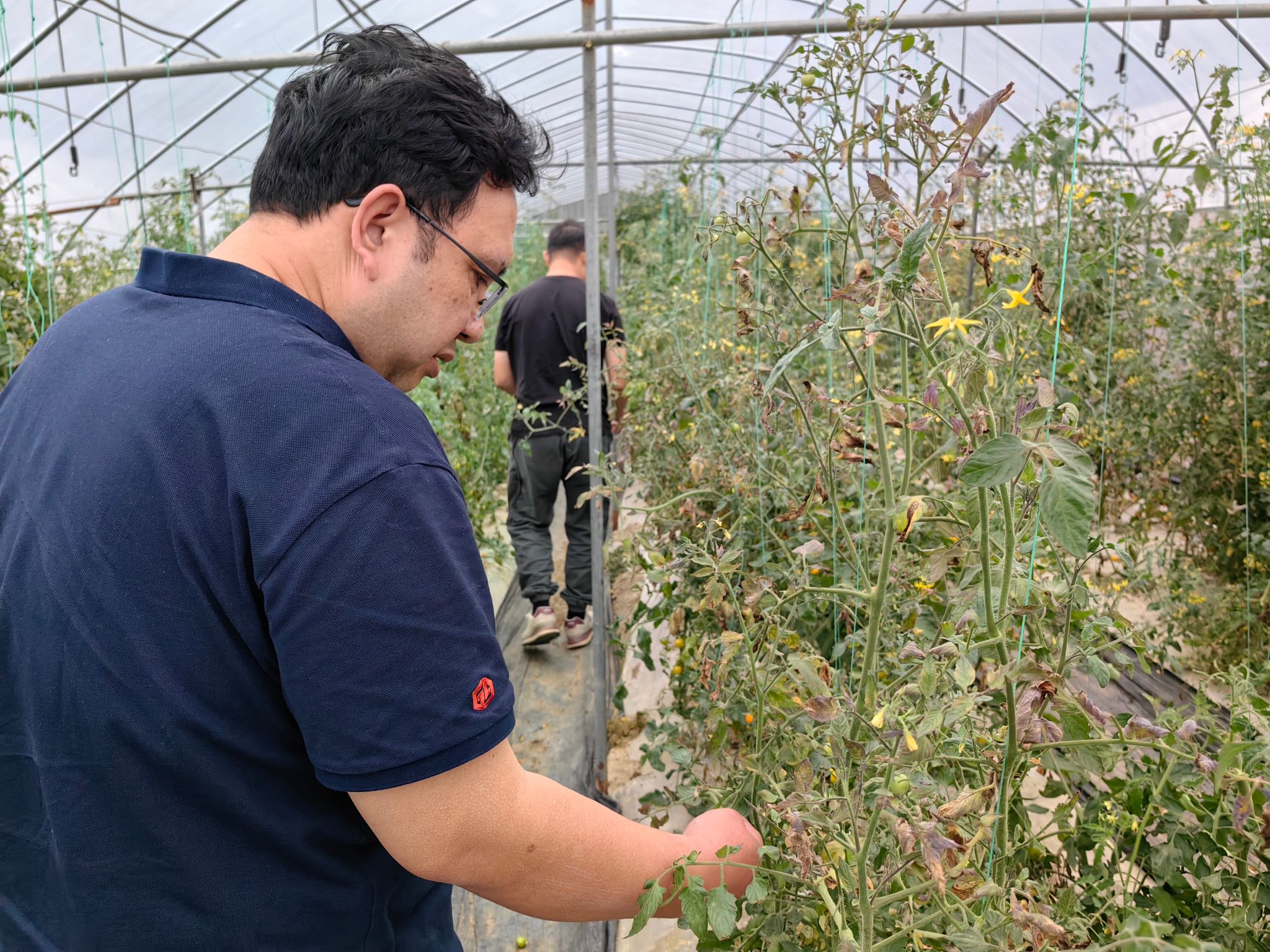 在新丰县蔬东坡农业开发有限公司,郭建文一行在企业负责人潘伟陪同下,详细了解生态农场智慧管理运维情况,参观了新丰县蔬菜省级现代农业产业园农业设施项目,并就智慧农业机械设备科技服务智慧农场工作进行了深入交流。