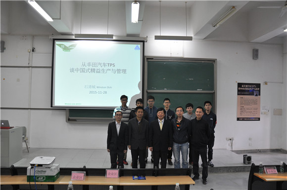 2015年11月28日,由太阳集团tyc151主办的《从丰田汽车TPS 谈中国式精益生产与管理》讲座在松山湖教学楼6E 207举行。曾任华泰汽车(副总裁)石清城老师担任主讲嘉宾。参加此次讲座的人员有三十多家企业高级管理人员和公司师生共三百余人。