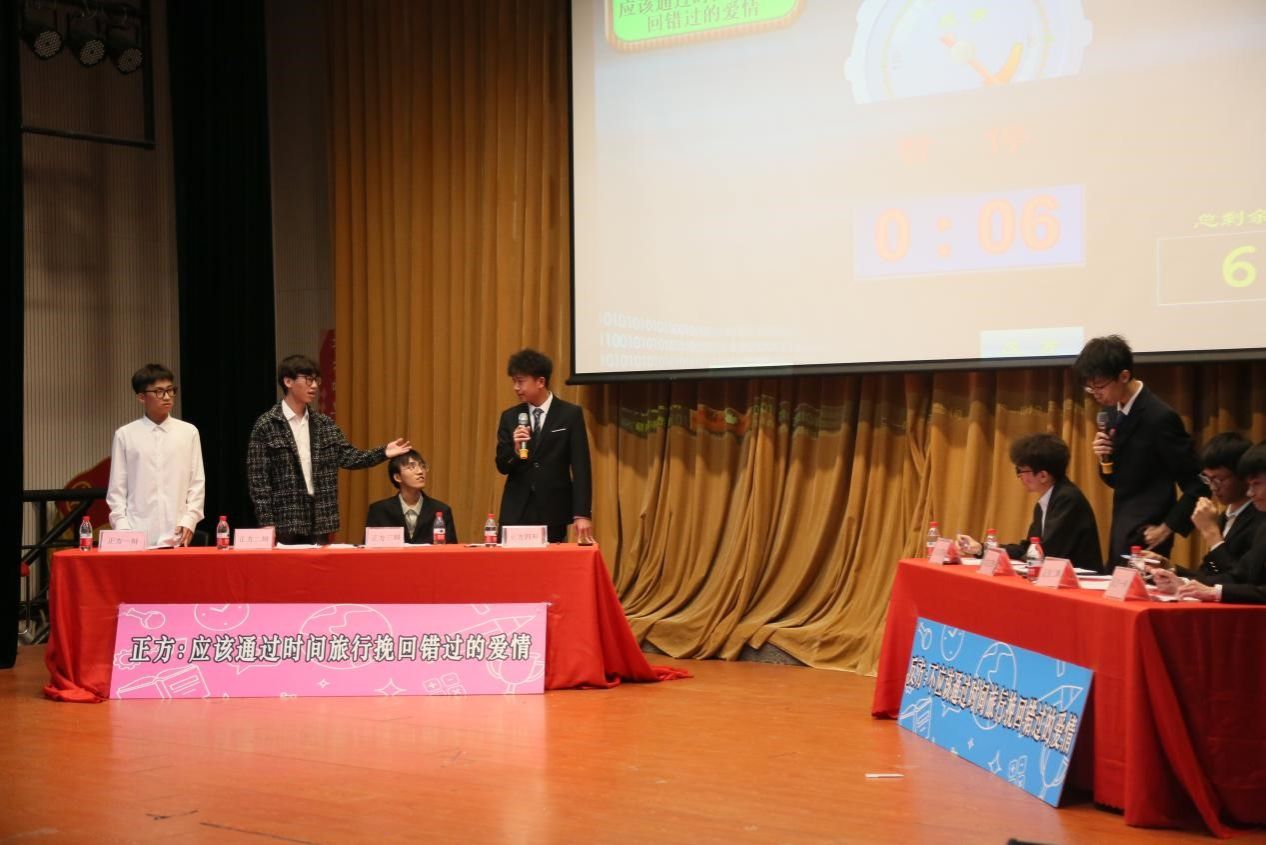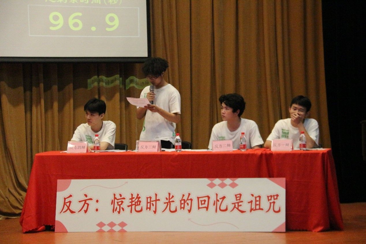 本届辩论赛双方围绕“惊艳时光的回忆是礼物/诅咒”“应不应该通过时间旅行挽回错过的爱情”展开激辩,正方辩手紧扣辩题主旨,口中珠玑迸发,犀利的言辞如利刃出鞘般直击对方要害;反方辩手也不甘示弱,掷出的反击观点新颖脱俗,论据清晰有力,为本场比赛定下立论基调;双方辩手逻辑缜密、思路开阔,在摆脱旧有观念束缚的基础上,对给出辩题进行纵深剖析,进入质询环节和自由辩论时现场气氛更是逐步高涨、战况愈演愈烈,双方之间你来我往,唇枪舌剑,思维碰撞!
