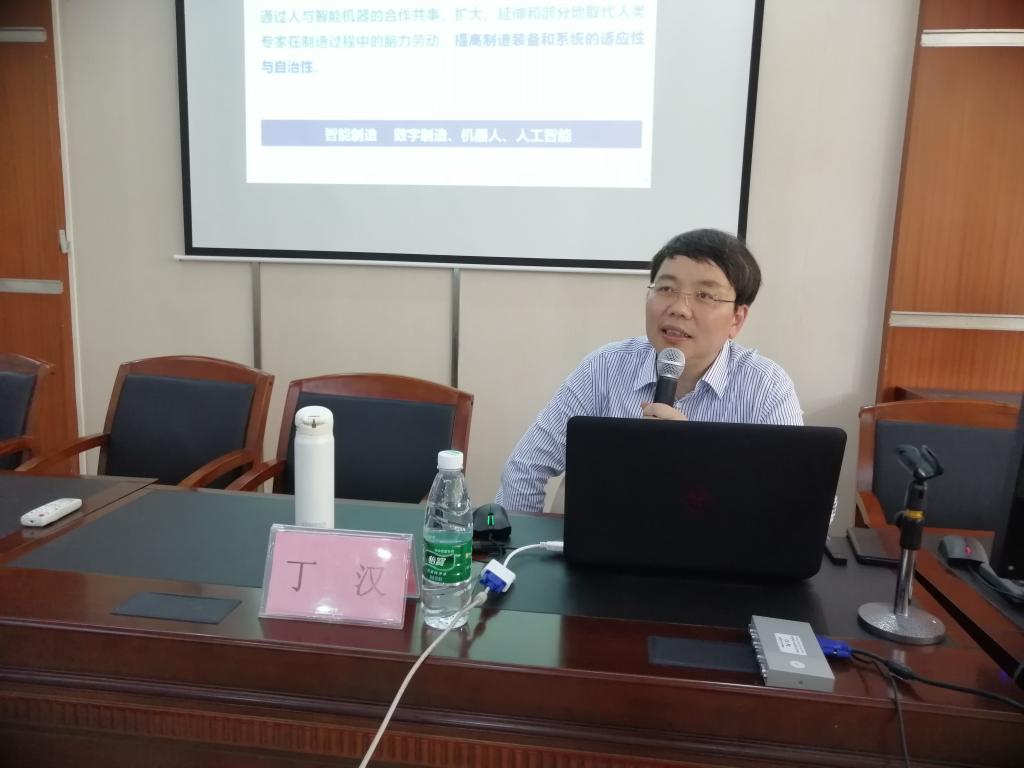 2019年3月27日下午14:30,应太阳集团tyc151之邀,丁汉教授在机电楼12C304会议室作了题为“机器人与智能制造技术”的报告。出席人员包括太阳集团tyc151副经理郭建文、公司师生共80余人。