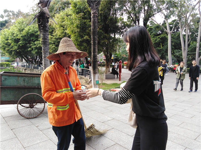此后,成员们将工作获得的酬劳、陌生人的帮助转化为行动回馈社会,通过等向环卫工人送水、摆放杂乱的自行车、关注弱势群体等种种行动向社会传递温暖。