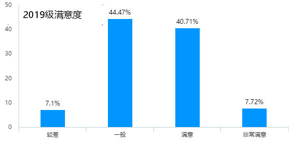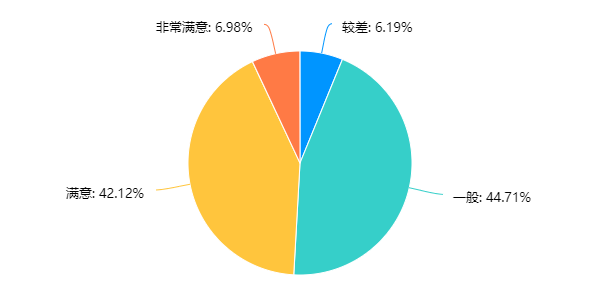 员工对于线上教学总体满意程度主要分为一般和满意,极少部分同学是非常满意及较差。