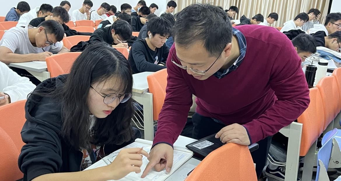 为促进公司学风建设,营造良好的学习氛围,解决员工在学习过程中遇到的困难,提高员工学业成绩。太阳集团tyc151第三期“青匠辅学”学业帮扶计划在第十五周如期开展,机械制图教师曹晓畅、郑东海,陈磊,张晶、林小夏以及机械制图协会的员工走进2021级晚自修课堂,帮助同学答疑解惑。