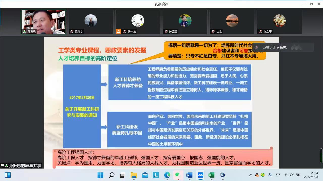 经理孙振忠结合公司近期公司产品大讨论工作的开展,向公司全体教职工开展了题为《工程材料及成型技术--基于引领分享的课程思政实践探索》课程思政案例报告。他强调全体教师要在对课程全面认知基础上,深入挖掘思政教育素材并融入,深化课堂教学改革,不断提升人才培养质量,培养新时代社会合格建设者和可靠接班人。