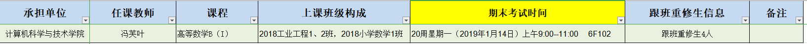 2018-2019学年第一学期 期末考试安排(太阳集团tyc151承担开课课程)