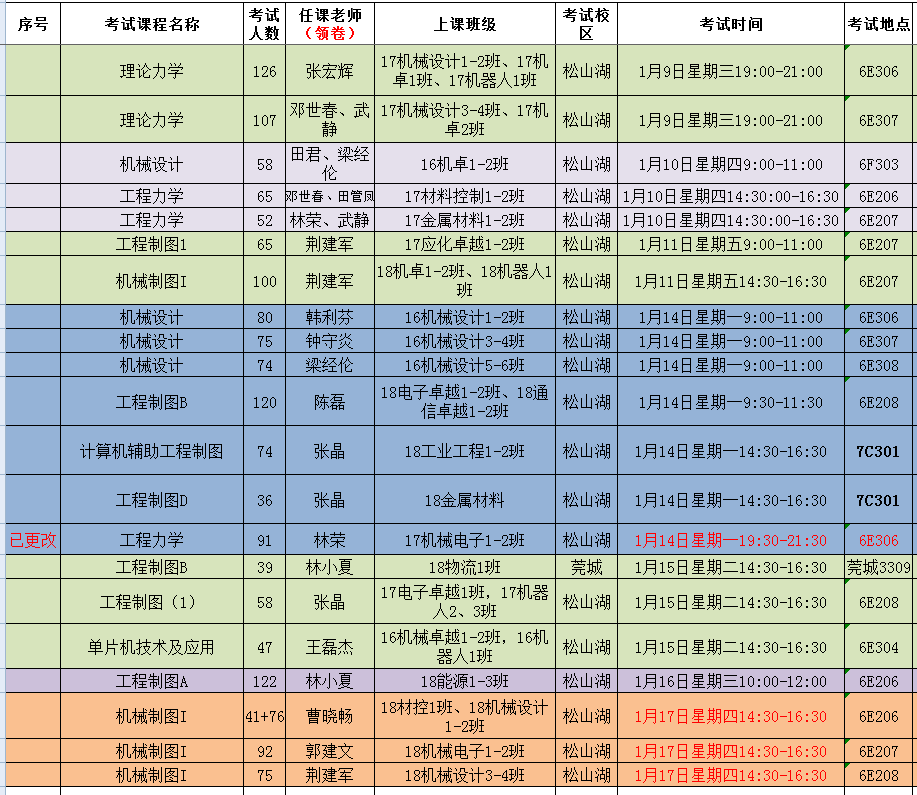 机械工程院安排的考试如无特别说明,补修、跟班重修的员工按跟班班级就坐考试