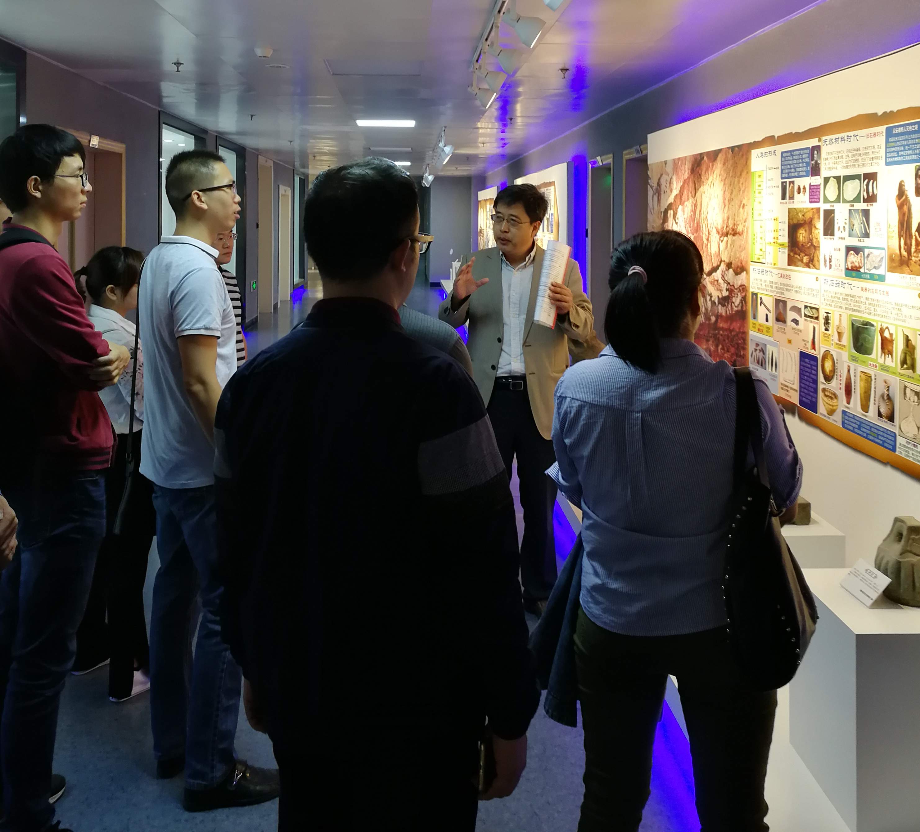 刘教授首先带领我校教师参观了利用走廊空间建立的材料科学博物馆,博物馆一共分为了“过去、现在、未来”三大板块,在这里通过实物以及墙报介绍了材料发展的历史与人类文明进程的重大关联性,这对新生入学教育以及提升材料专业员工对自身专业的认同感很有帮助。随后,刘教授带领我校教师参观了实验室。在这里,除了了解到他们实验室所拥有的精良设备,还学习了实验室的合理规划与编排,并且可以参观很多自主设计的非常实用的实验设备,学到了不少实验“小技巧”。