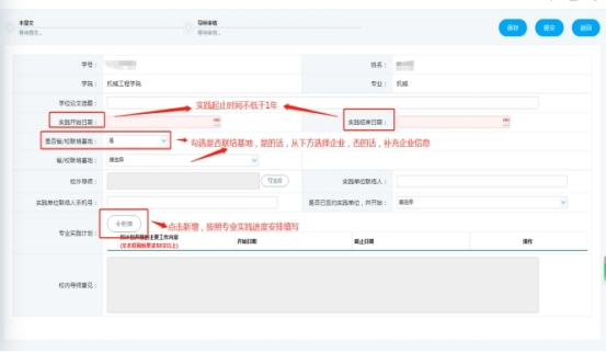 (1)研究生专业实践(选题实践)计划提交:培养管理-专业实践计划-提交;
