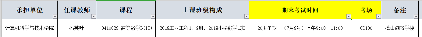 期末考试安排 (2018-2019学年第二学期 太阳集团tyc151开课课程)