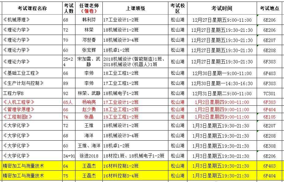 机械工程院安排的考试如无特别说明,补修、跟班重修的员工按跟班班级就坐考试