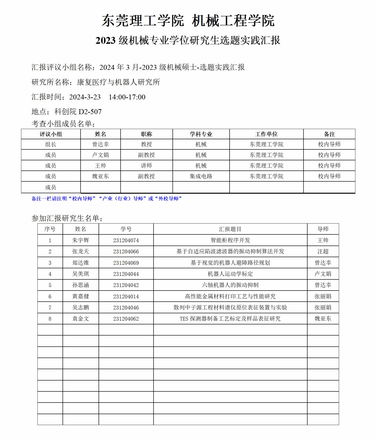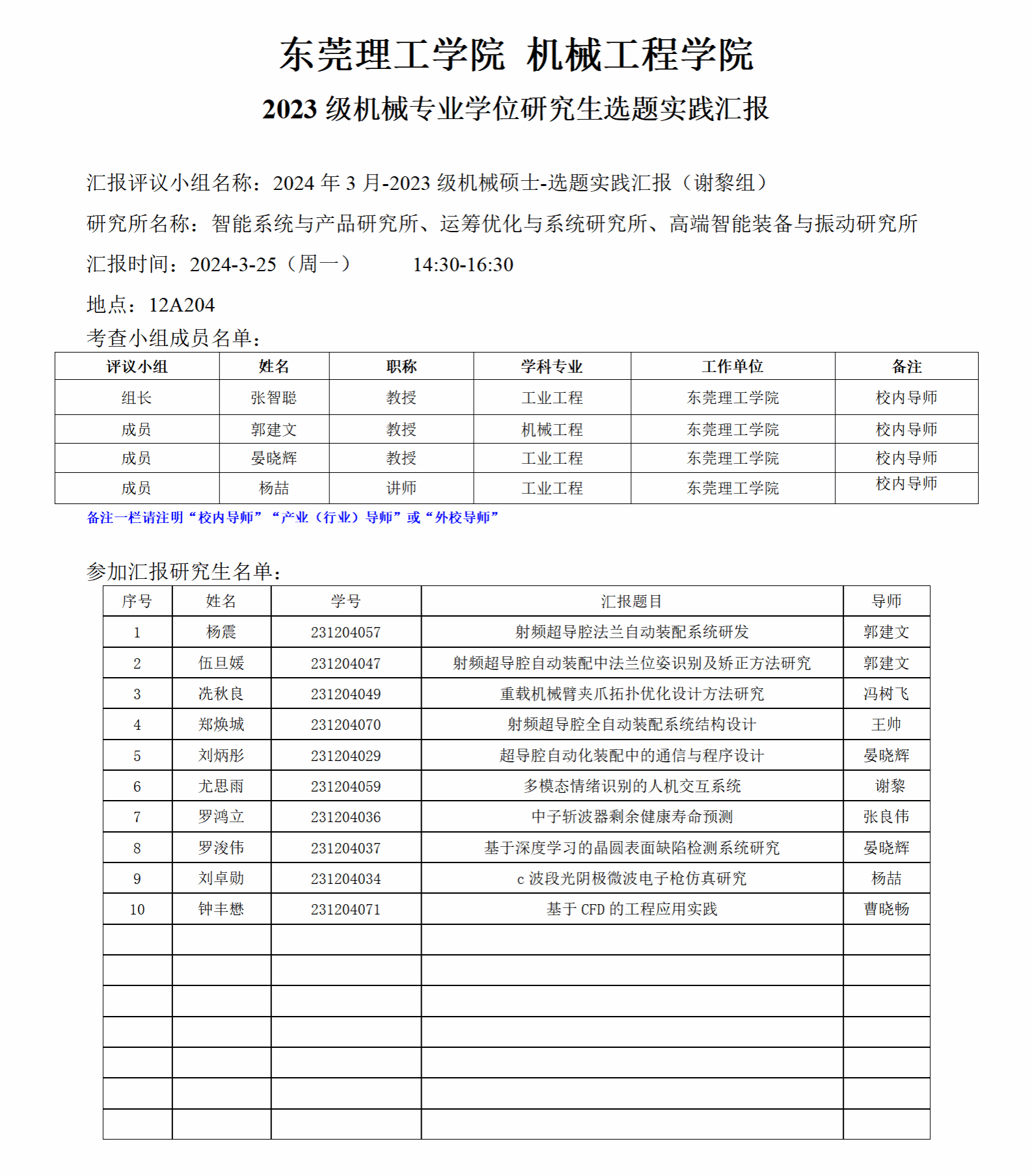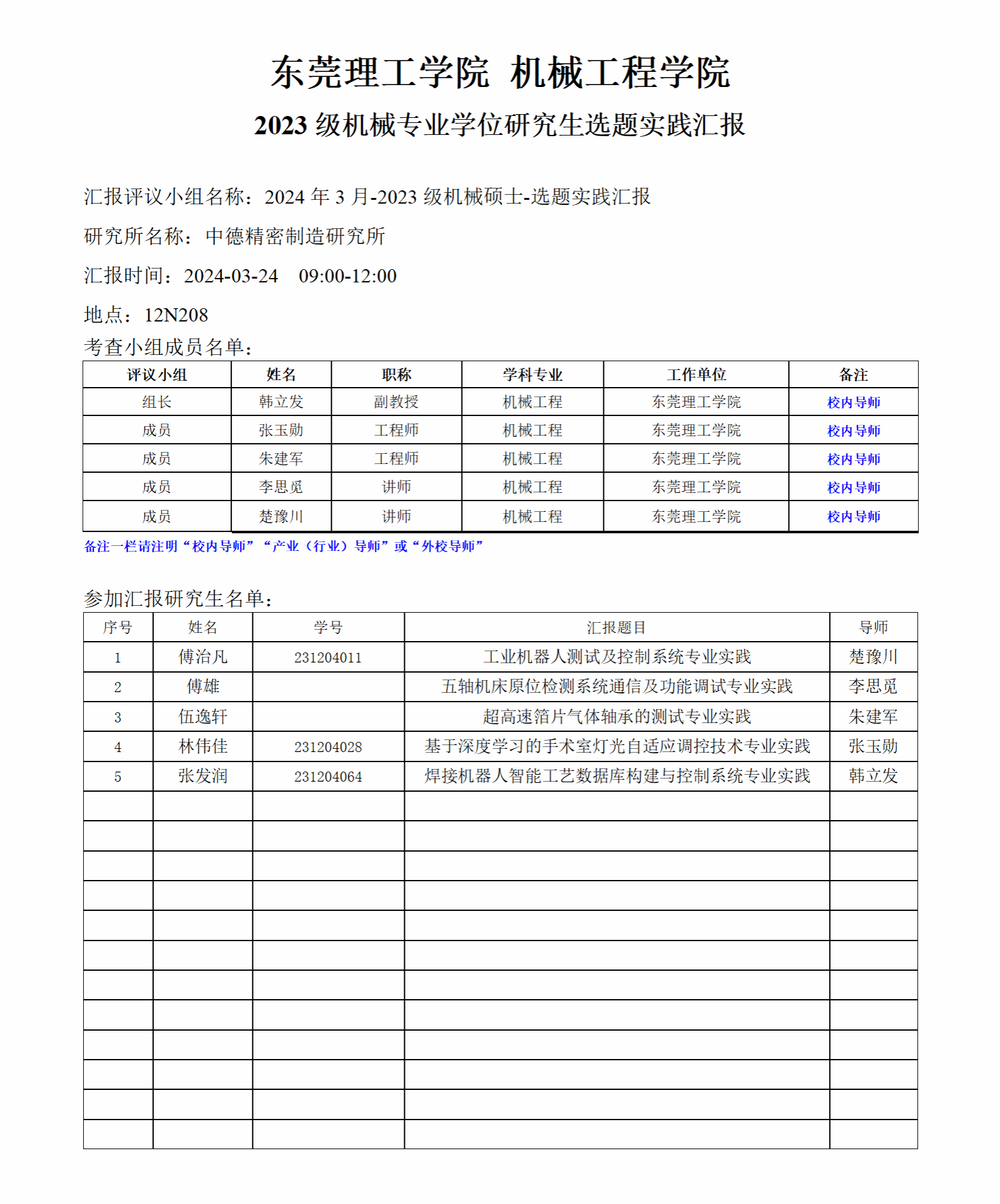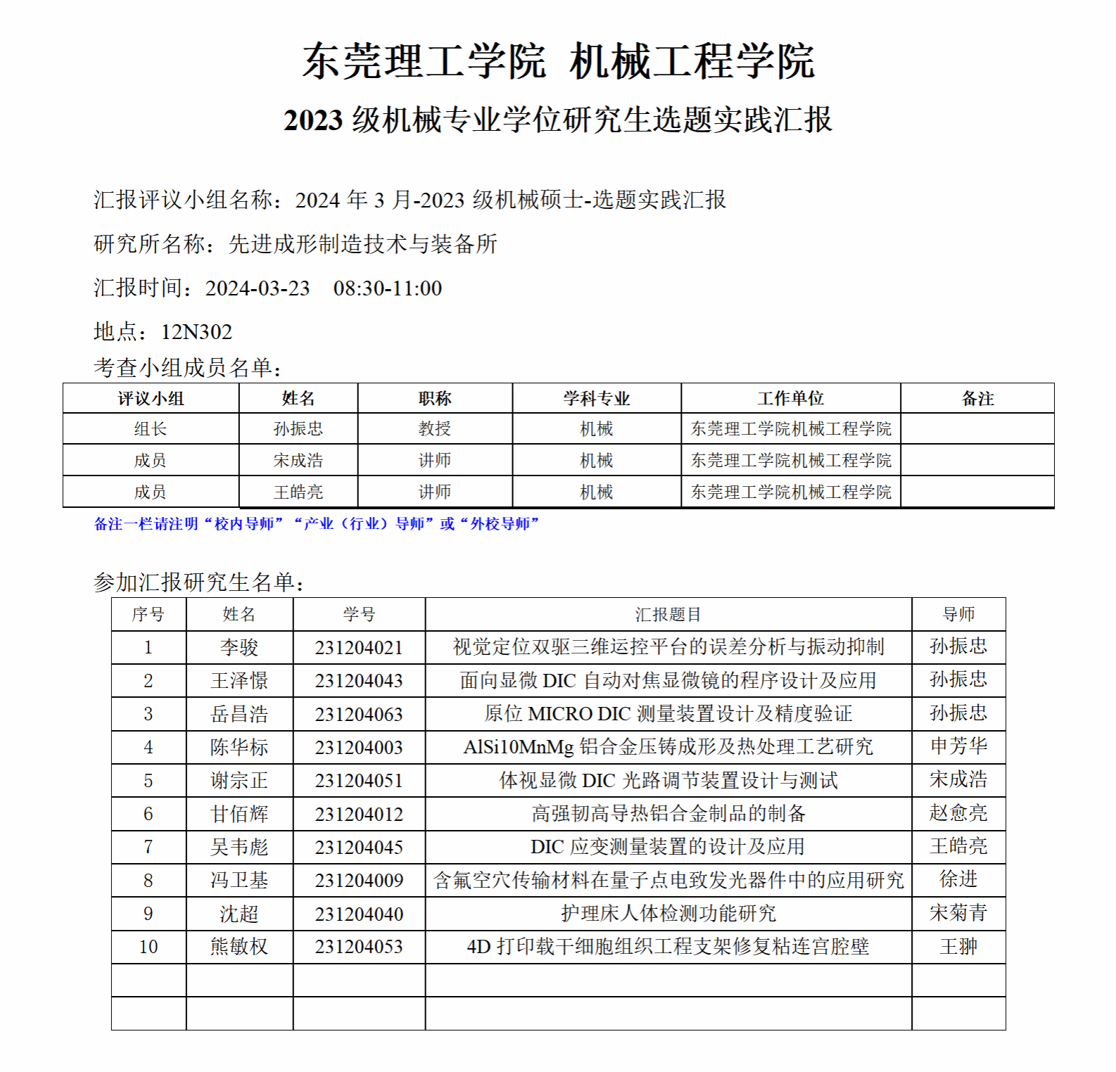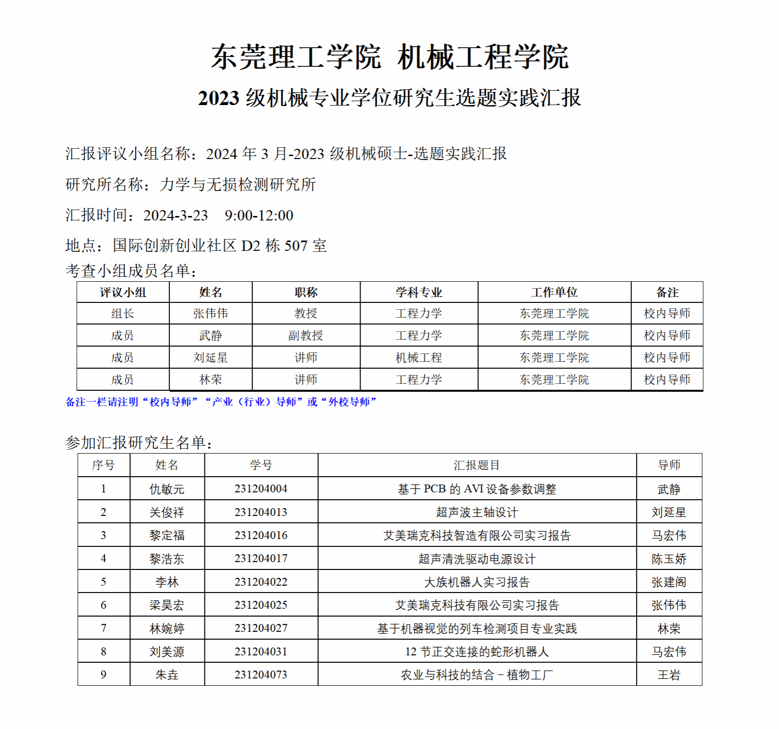 2023级机械专业学位硕士研究生选题实践主题汇报公告