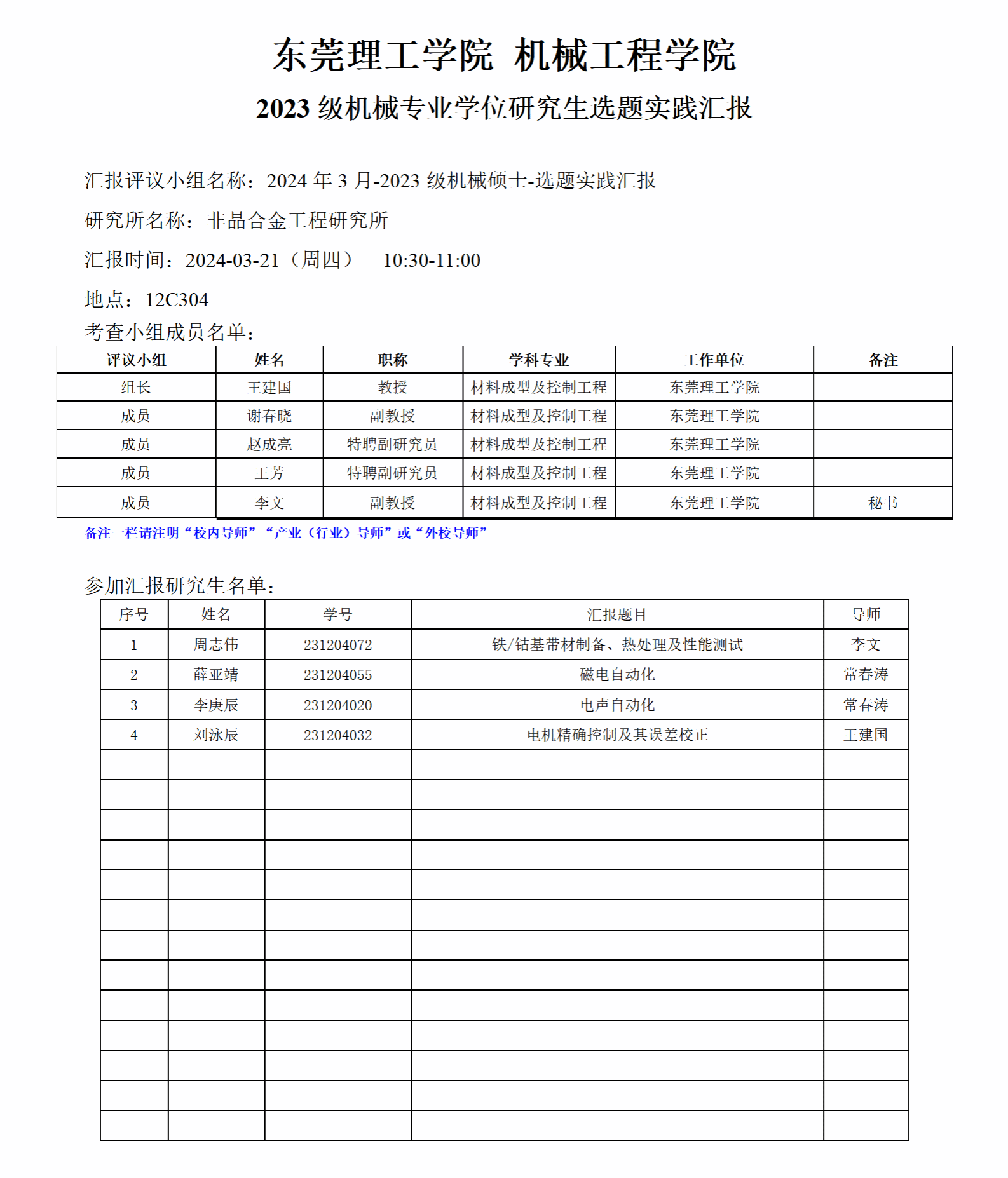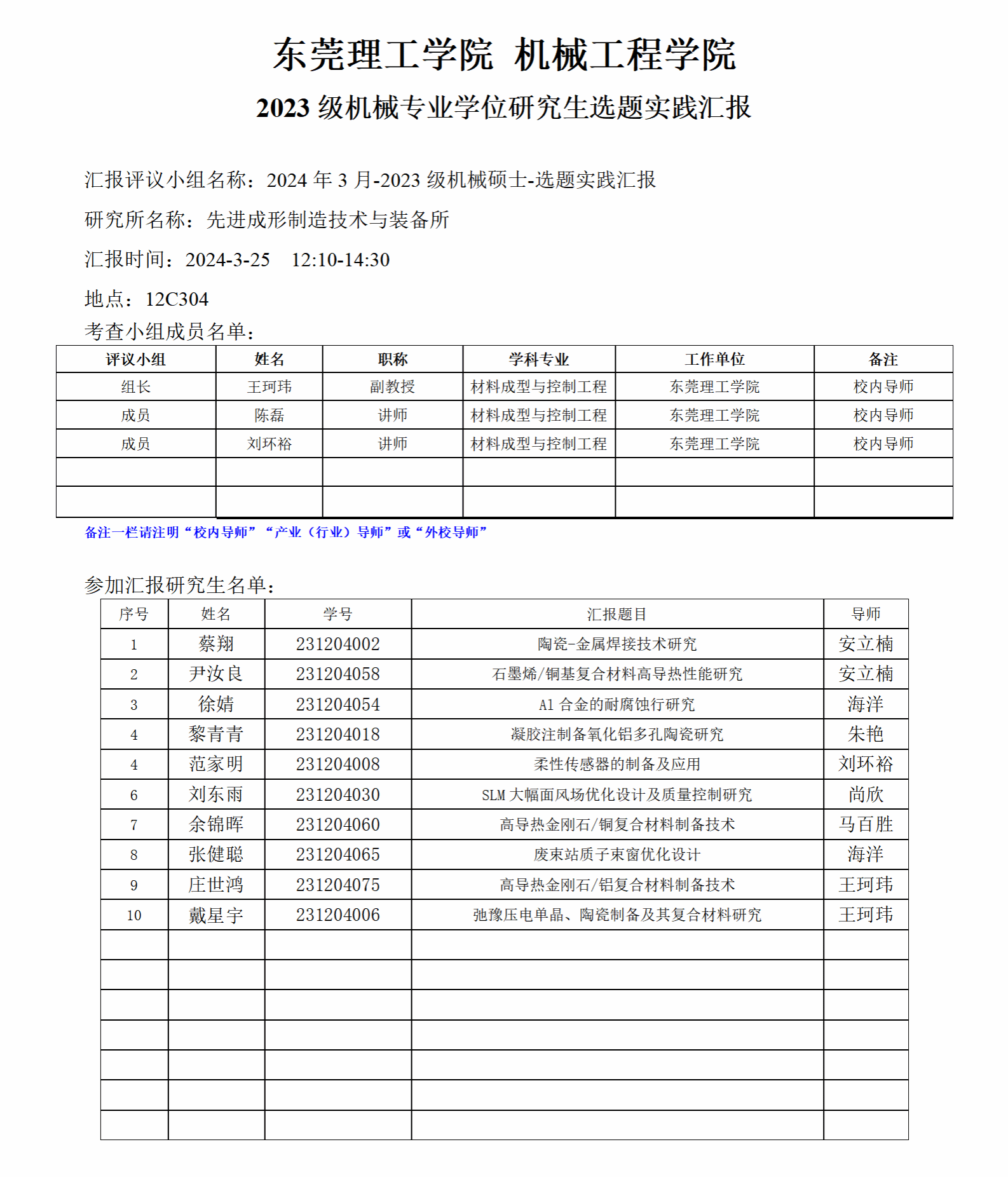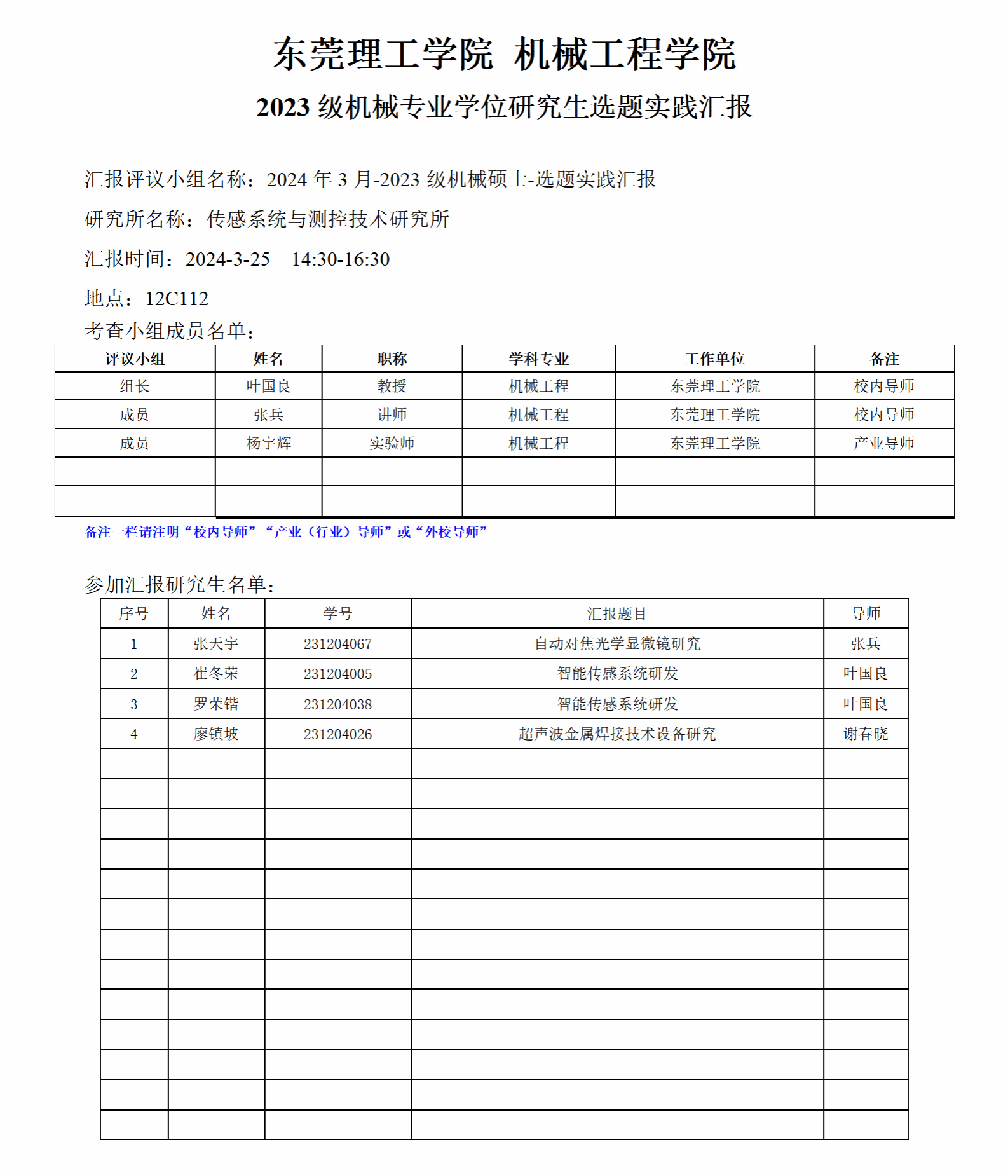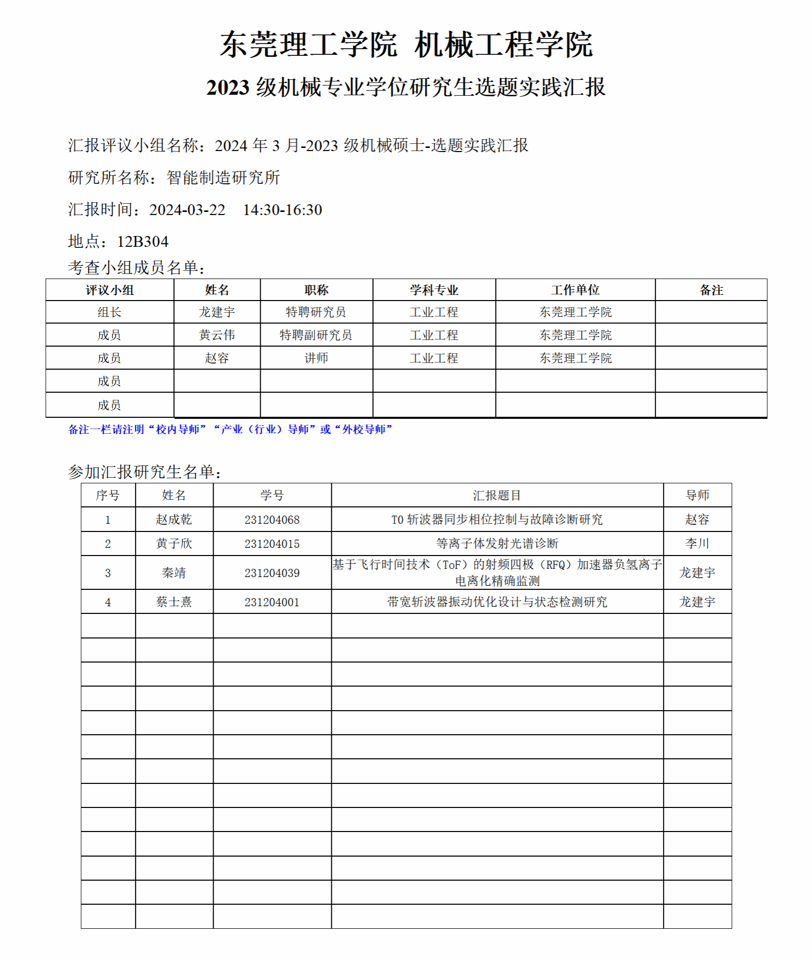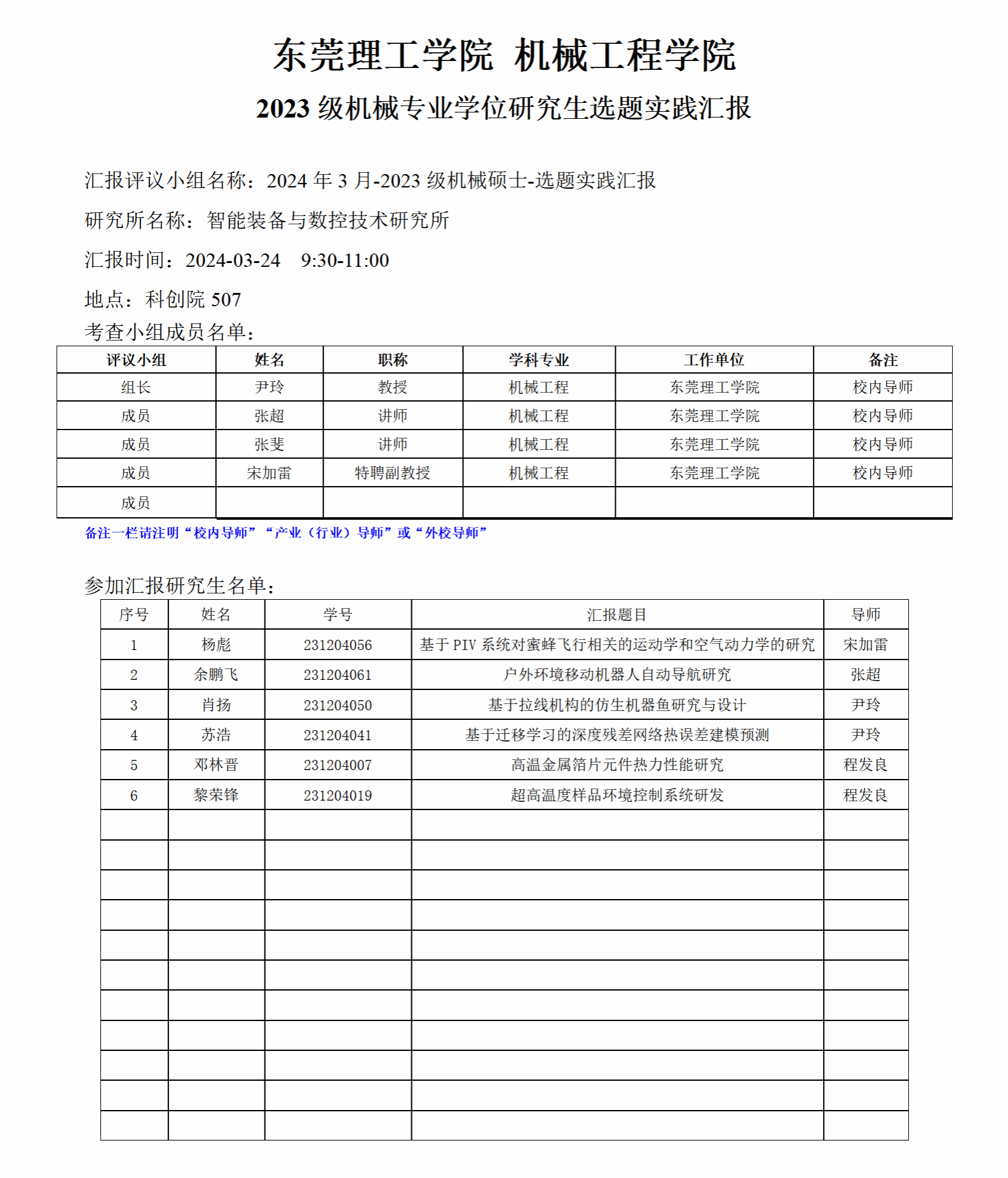 2023级机械专业学位硕士研究生选题实践主题汇报公告