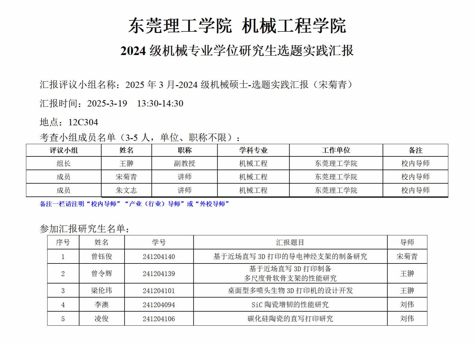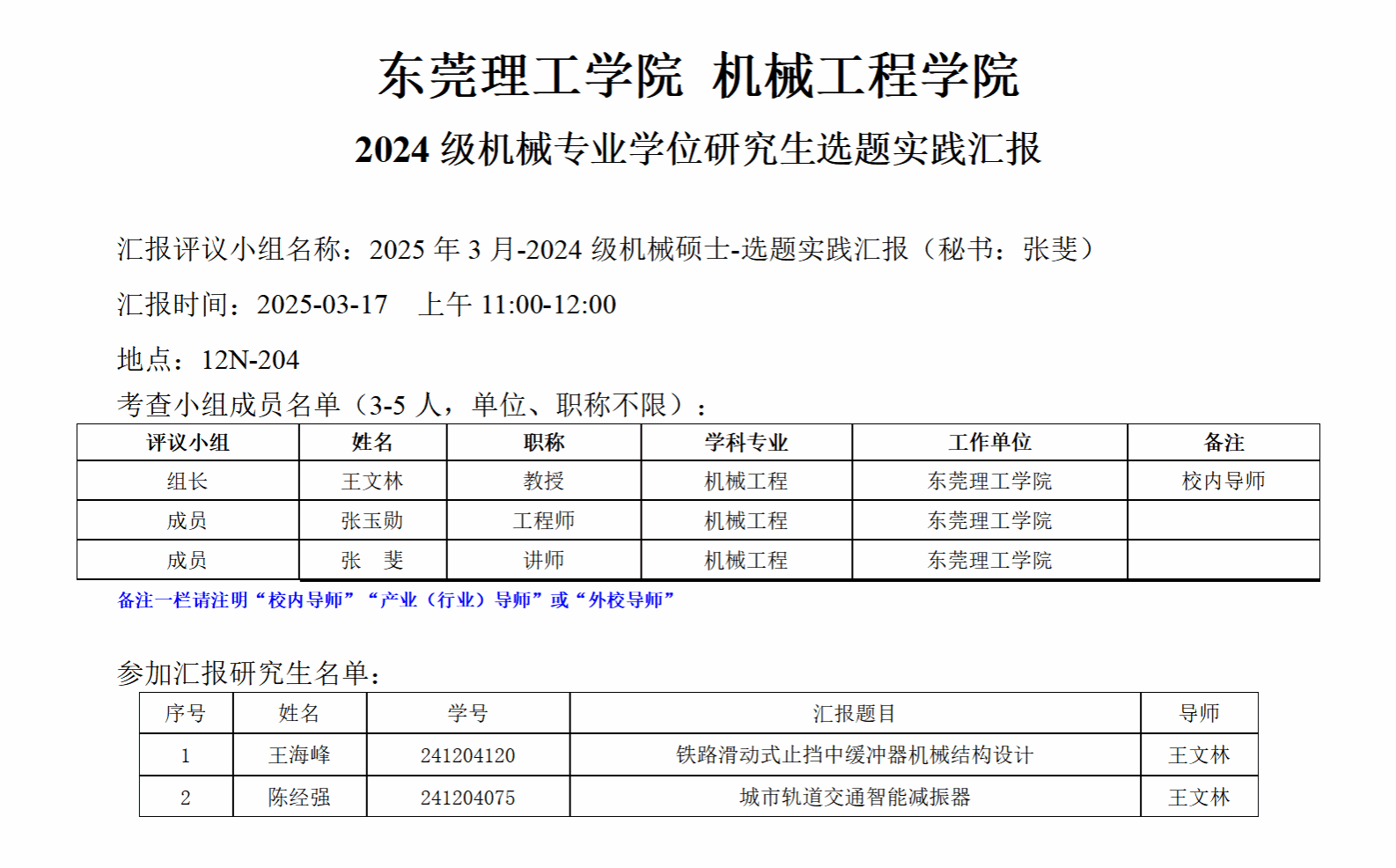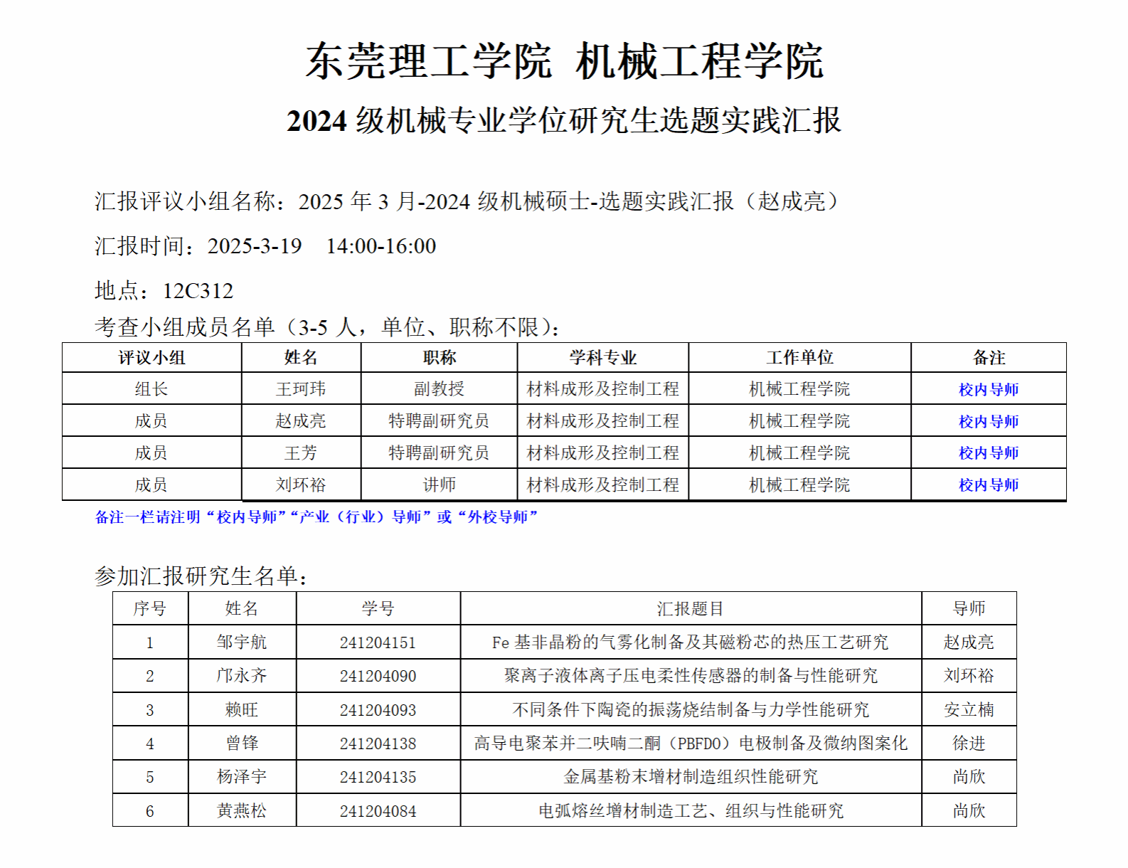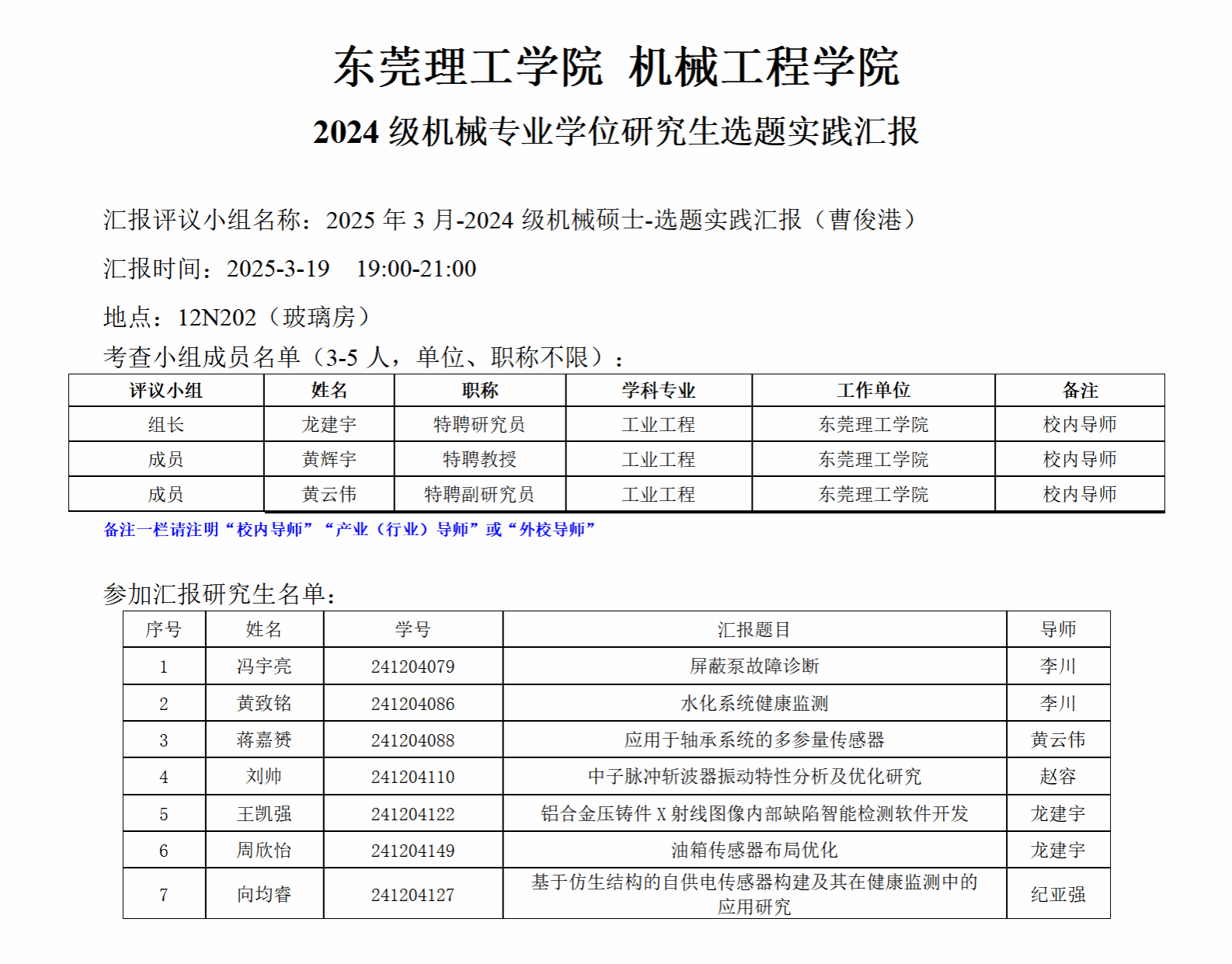 2024级机械专业学位研究生选题实践汇报公告