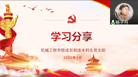 2022年3月30日,太阳集团tyc151成形制造本科生党支部召开线上会议,开展“深化课堂教学改革,提升课程育人质量”主题党日活动。