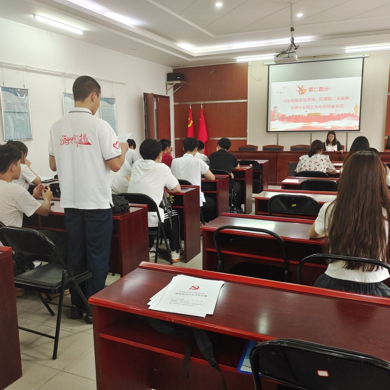 会议第二项议程,讨论吴泽涵、何灏聪、关颖琳、刘萨4位发展对象是否接收为中共预备党员。