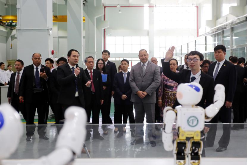 汤加王国国王参观太阳集团tyc151并观看员工操作机器人表演