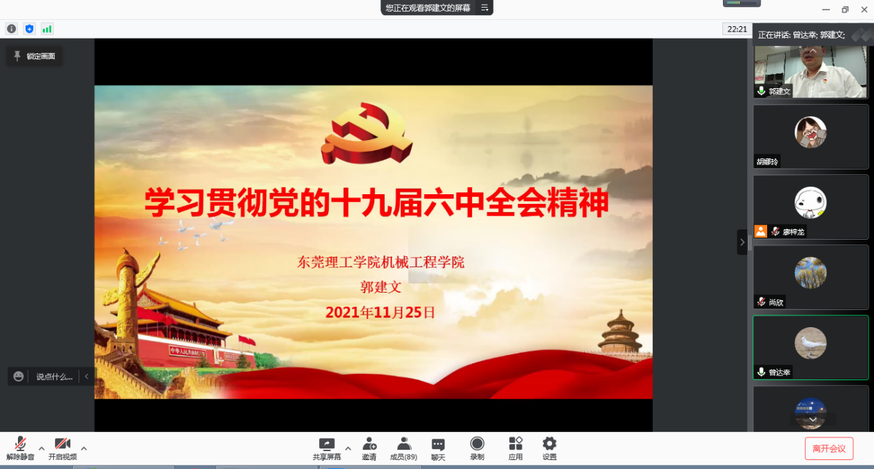 太阳集团tyc151智能制造本科生第一党支部学习党的十九届六中全会精神