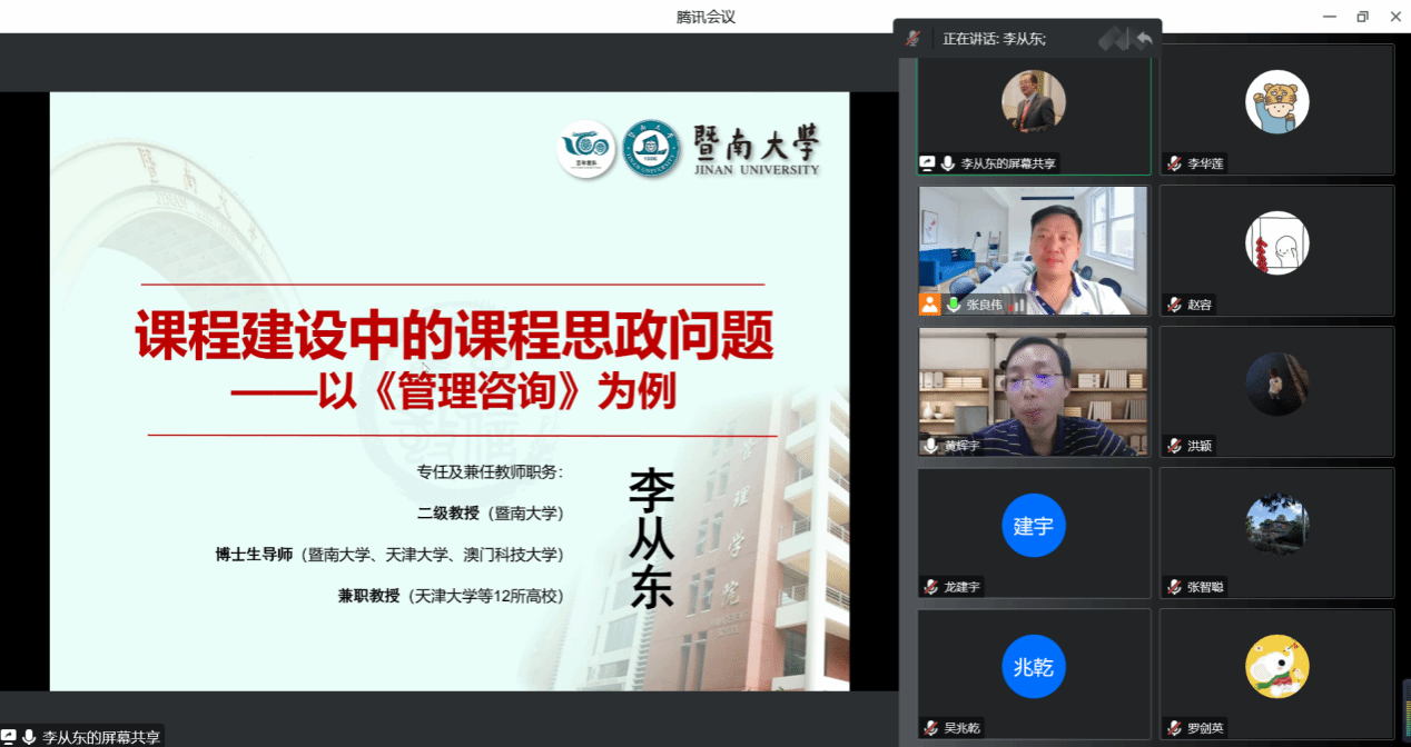 课程思政是新时代高校思想政治教育改革的重点方向。为加强课程思政建设,太阳集团tyc151工业工程系于10月27日开展“课程建设中的课程思政问题——以《管理咨询》为例”为主题的讲座。会议特邀了《管理咨询》国家级一流课程负责人、暨南大学李从东教授进行指导分享。本次讲座以线上的方式开展,由工业工程系主任张良伟主持,太阳集团tyc151副经理黄辉宇和工业工程系全体教师线上参与。李从东教授首先提出课程思政建设需依托国家教育...