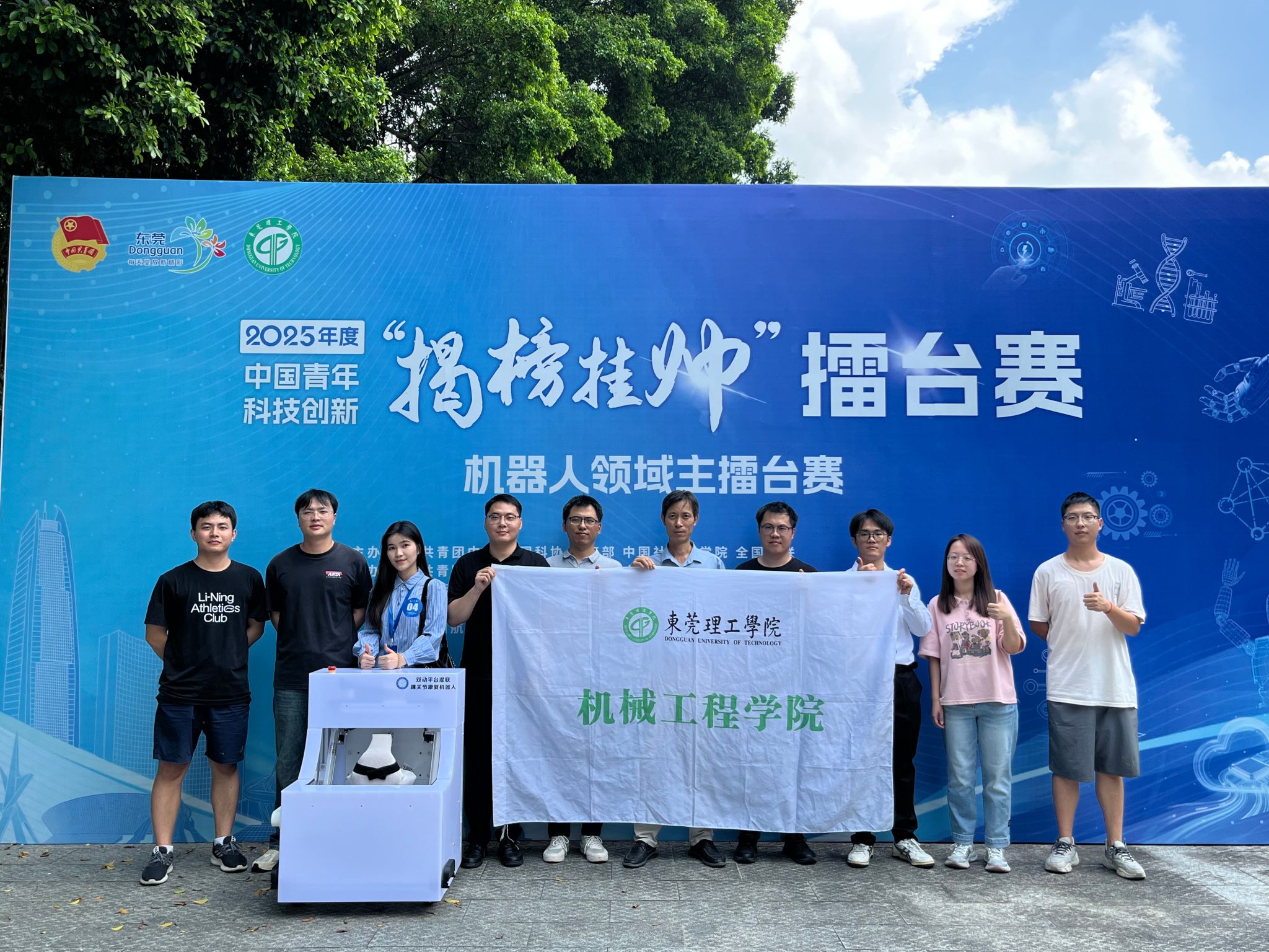 2025年10月10日-12日,2025年度中国青年科技创新“揭榜挂帅”擂台赛“机器人领域”终审擂台赛在广东省东莞市成功举办。太阳集团tyc151参赛项目《双动平台混联踝关节康复机器人》成功入围终审擂台赛,并最终夺得擂主!公司研究生郑达维(左一)代表团队上台领奖参赛队伍来自公司曾达幸教授建立的“莞燕机器人”团队,参赛项目由邓云蛟和褚宏鹏老师指导,并得到该团队卢文娟和王帅老师的大力支持,由研究生郑达维、孙思...